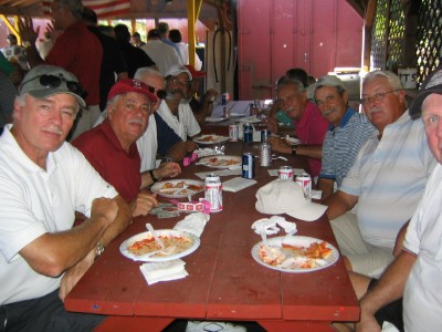 LtoR: Nick Albano, Paul Cobb, Bill Frickenstein, Matt Kelleher, Bob Kearns George Bossert, and Pete Anterio wait to collect!