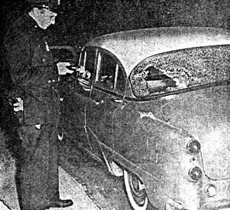 The two guns of the killer flashed and a slug ripped into Officer Roden's right shoulder. Other rounds tore into a car window behind Roden as the gunman fired