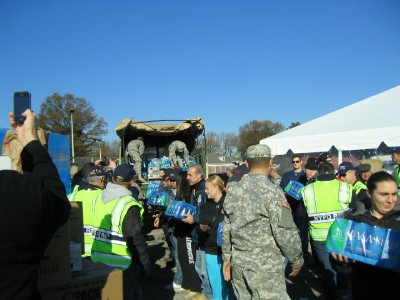 Bulk supplies were unloaded by hand from trucks, and with the assistance of NY State Assemblyman Michael Cusick, (D-NY)