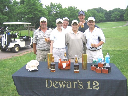 Photo by NY Cop Online Magazine L.toR. Harry Devoti, Madeleine Cornet, Ray Taylor, Alley Mulrain, Det.Eddie Reuss, Ed Reuss at the 12th hole Dewar’s 12 on the 12th Hole was a special feature of the outing. Madeleine Cornet and Alley Mulrain, Dewar’s representatives, gave each golfer a taste of 12 year old scotch and a prize. A hole in one contest was also part of their program. We will be sure to ask them to return in our future events!