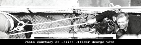 would be a goner. All bravado left him now as the cops again offered him the safety line. He readily agreed as Officer Seaberg tossed him the rope. He slipped the