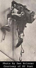 of the clamps had nylon stirrups that he used to boost himself up the side of the building. It would be