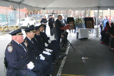 . The weather was inclement, however, many active and retired members of the 9th Precinct responded to 9th Precinct to honor the memory of Officers Laurie and Foster