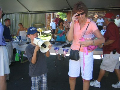 Rich Commesso’s grandson, Michael Stumpf calls out the winnng tickets with Marie Zolfo